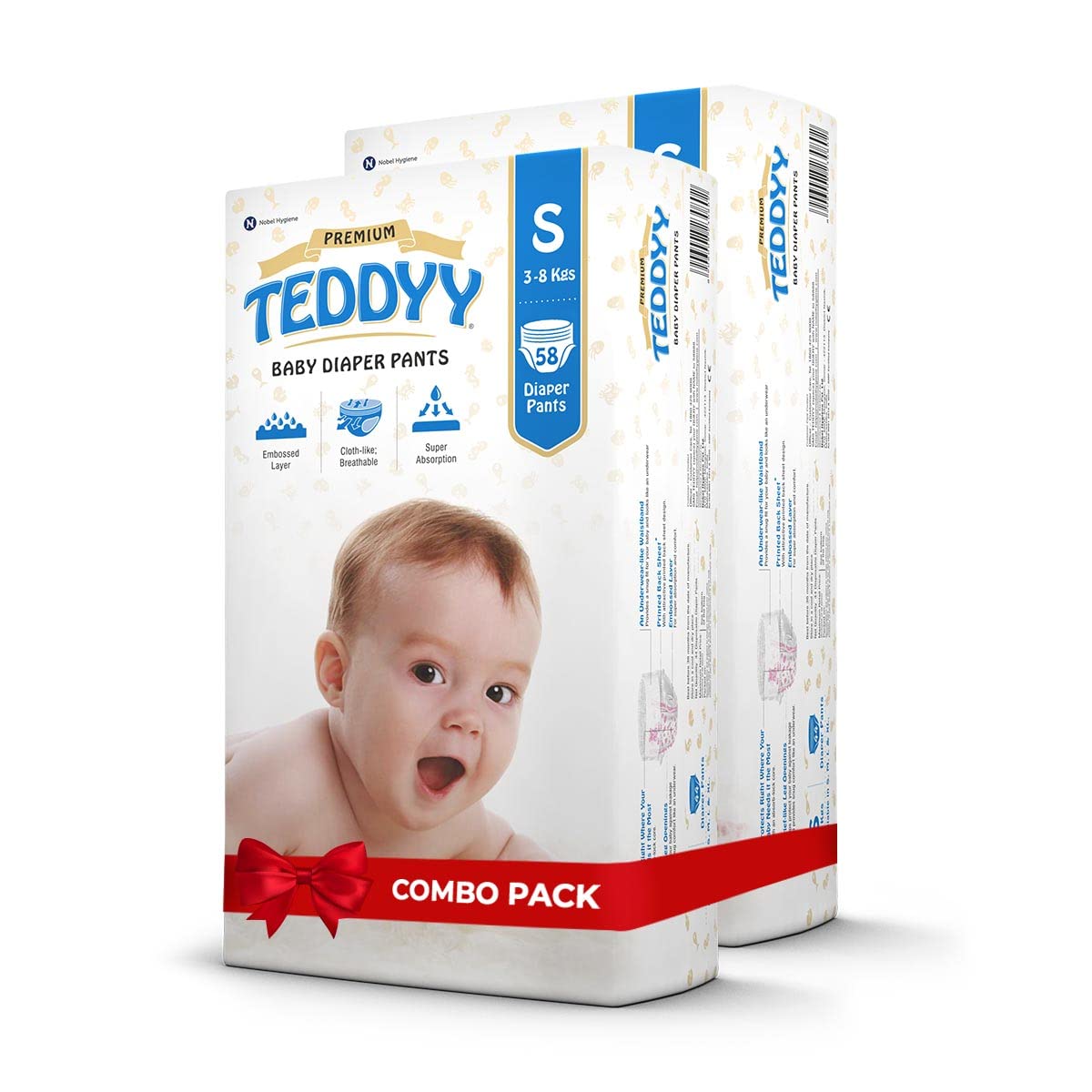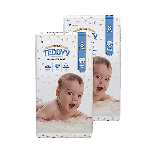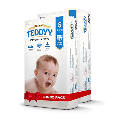 TEDDYY Baby Premium Small Diaper Pants 116 Count (Pack of 2), 4-8 kgs, Long Lasting Absorption, Anti - Bacterial