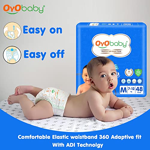 Oyo baby gentle baby wipes are strongly recommended for your little bud. Each sheet is smooth and ideal for babies' delicate skin. For babies cleaning during diaper changing is a task that can also make the skin around the area of the body covered by diapers very delicate so Oyo baby Water wipes should be used to clean this area to prevent rashes and redness. The baby wipes pack is easy to carry and reduces the clutter that occurs when changing diapers. Enriched with the goodness of aloe vera calendula and Vitamin E Oyo baby Wipes are gentle enough to soothe the baby's bottom during the diaper change. Wet wipes can also be used to gently cleanse baby skin. The natural ingredients ensure that the baby remains bacteria-free all day. Our wipes are safe to be used by the entire family. OYO BABY Diaper pants are available in different 4 Sizes Small Medium Large & Extra Large. Choose the best diaper for your baby as it provides a 360-degree waistband with complete comfort. Additionally Added Anti Aloe-Vera shield that protects your baby from rashes and redness. Babies have sensitive skin that can react to any material. Having the right kind of diaper keeps the baby from developing skin rashes infections redness and other infections caused by pee and feces. OYO BABY Diapers have super absorption capabilities which prevent wetness thus making the baby feel comfortable and dry. OYO BABY Diapers are available in various Sizes. To meet your everyday need we tend to try to create our OYO BABY diapers as easily as possible. We create diapers for babies happiness for totally different age groups and different sizes. Customers will select diapers considering the options that alter with different stages of growth and development in a very kid.