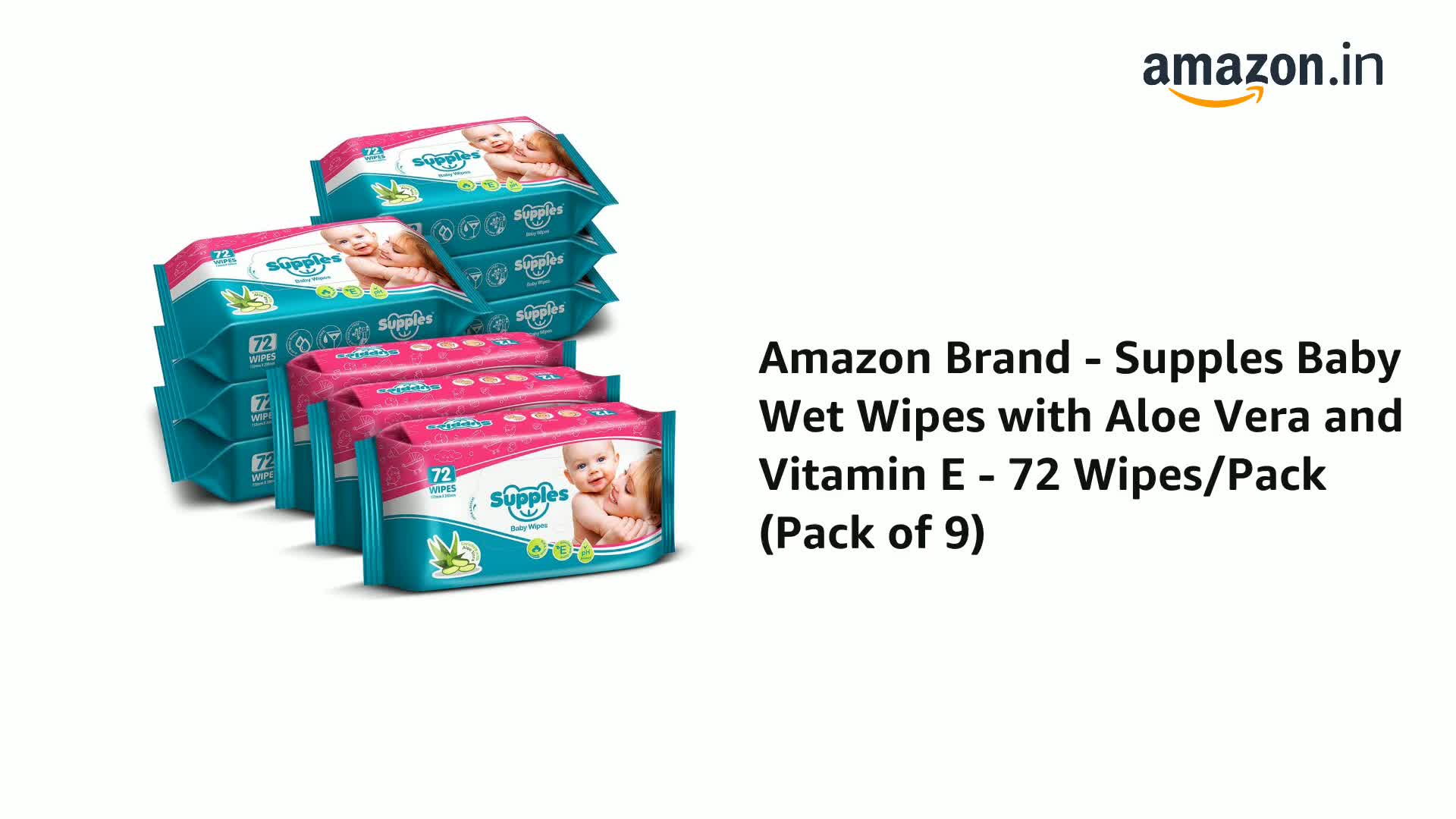 Supples Baby Wet Wipes with Aloe Vera and Vitamin E - 72 Wipes/Pack (Pack of 9)