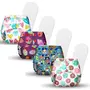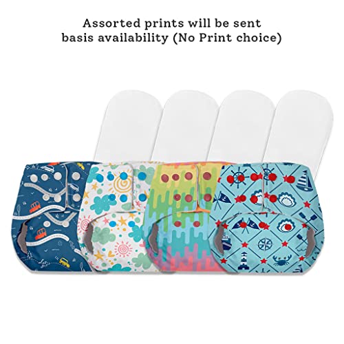 BASIC Assorted Pack of 4 Diapers with 4 Dry feel Inserts - Freesize cloth diapers | Reusable cloth diapers for babies - Fits babies from 0-3 years - 5-17kgs | Option 6
