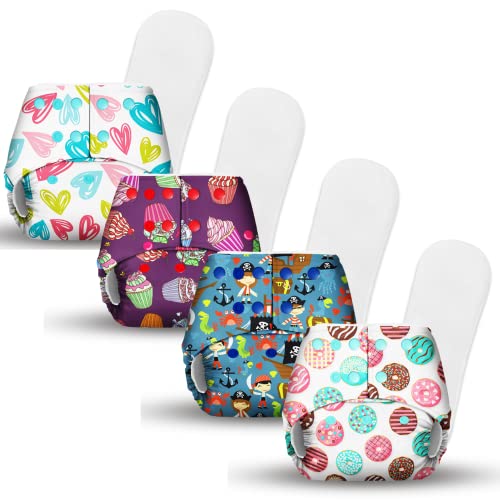CONTENTS : Pack of 4 cloth diapers for babies with 4 dry feel inserts / Soakers.