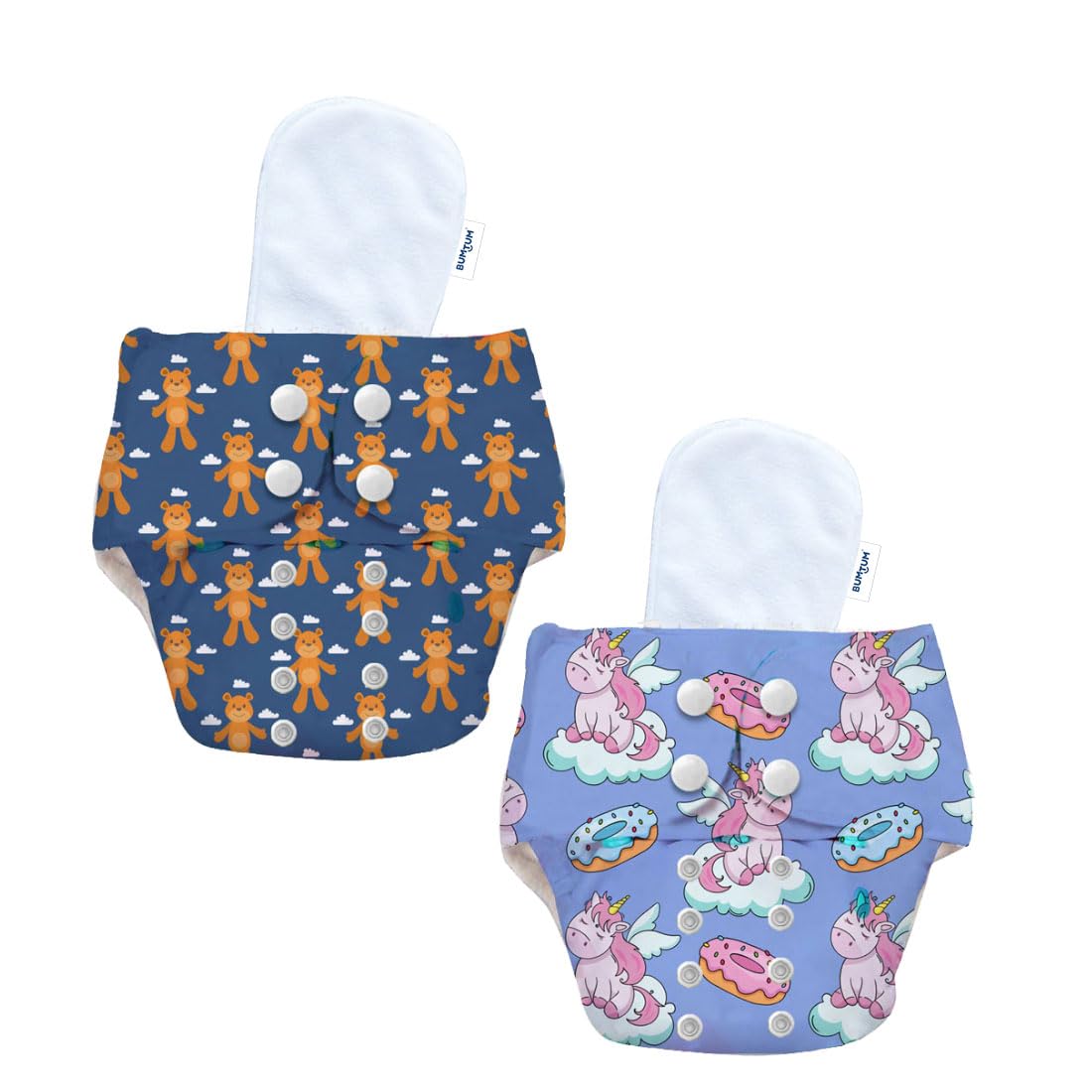 Bumtum Baby Diaper | 0-3 Yrs Baby Freesize | Pack of 2, New Born Baby Diaper, Cloth Diaper, Waterproof Reusable Diaper, 5hrs Absorbency, Washable, Cotton Soaker, Extra Soft (Teddy & Unicorn)