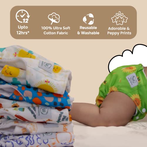 WATERPROOF OUTER SHELL: The outer layer is made with a Waterproof Outer shell to provide protection against leakage and ensure safer overnight usage. Our Premium Cotton Diaper for Babies is crafted for longer wear and provides up to 12 hours of protection