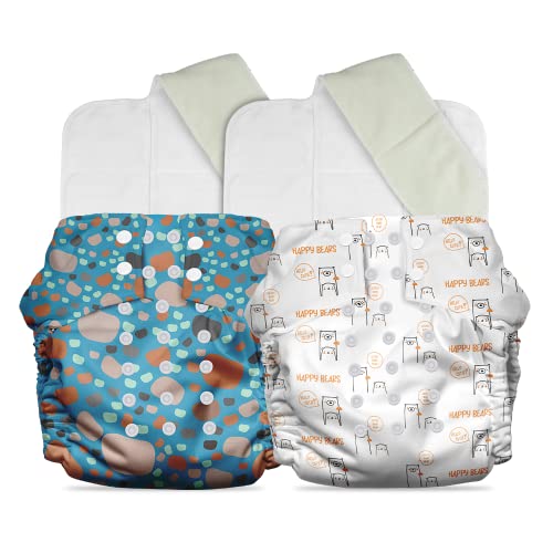 Mother Sparsh Plant Powered Cloth Diaper for Babies-Free Size | Medical Grade Fabric with 100% Organic Cotton | 13 Layer Breathable Soaker With Built-In Booster Pad | Pack of 2 (Pebbles&BCute)