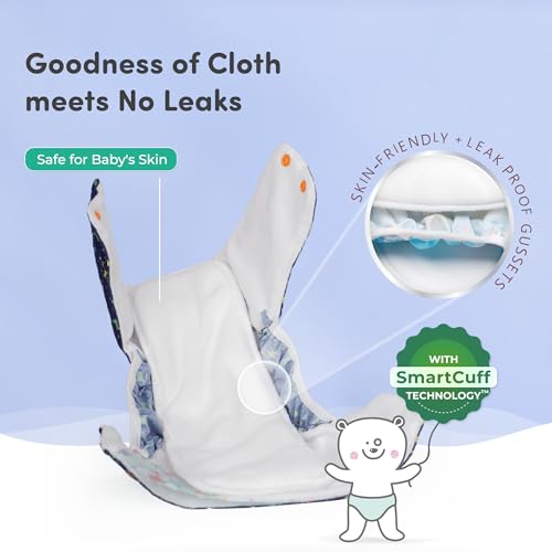 Mylo Leak Proof Baby Cloth Diaper Combo (1 Diaper & 1 Inserts) for 3 Months to 3 Years Babies | Oeko Tex Certified Washable & Reusable Baby Cloth Diaper | Free Size - Twinkle