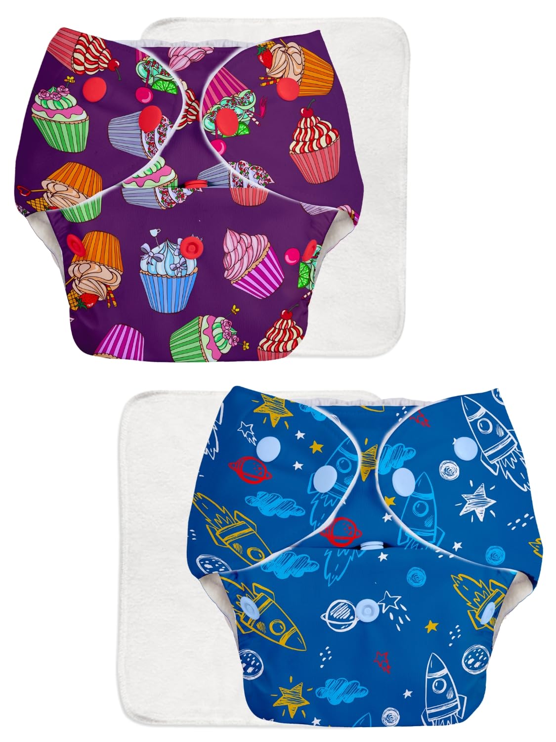 Superbottoms 2 Basic Reusable Cloth Diaper With New Quick Dry Ultrathin Pads-Pack Of 4|FreesizeWashable Diapers For Baby 0-3 Yrs|Stay Dry&Lasts Up To 3Hrs -Assorted