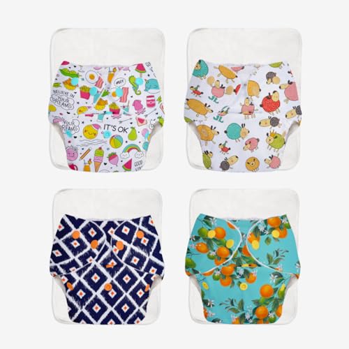superbottoms Basic Easy-Pack Of 4 Diaper+4 Inserts, Combo Pack Of Assorted Freesize Washable & Reusable Cloth Diaper With Dry Feel Soakers, 5-17 Kilograms, Option 3, Infant