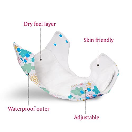 WATERPROOF ADJUSTABLE FREESIZE REUSABLE - Basic cloth diapers fit babies from 5kgs to 17kgs. You can easily adjust the size of the diaper to Small/Medium or Large/Extra Large depending on your baby's weight by snapping the buttons in the front. This helps