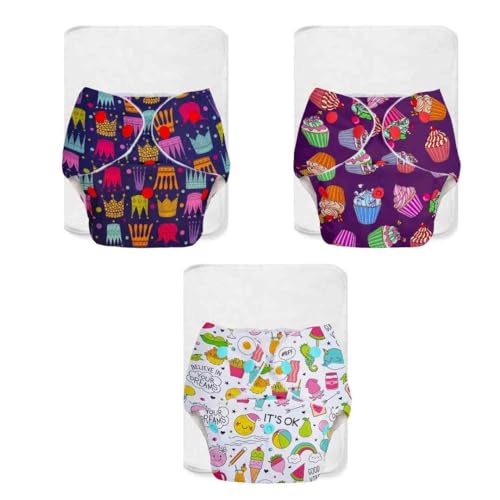 SuperBottoms BASIC - Assorted Pack of 3 Cloth Diaper For Baby | Washable & Reusable Cotton Cloth Diaper | 0-3 Years | Freesize | Adjustable | Reduces Rash | With Quick Dry Pad/Insert