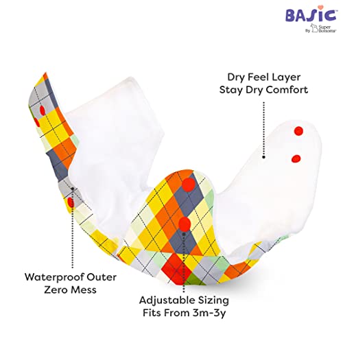 SuperBottoms BASIC - Assorted Pack of 4 (2 Shell + 2 Insert) Cloth Diaper For Baby | Reusable Cotton Cloth Diaper | 0-3 Years | Freesize | Adjustable | Reduces Rash | With Quick Dry Pad/Insert