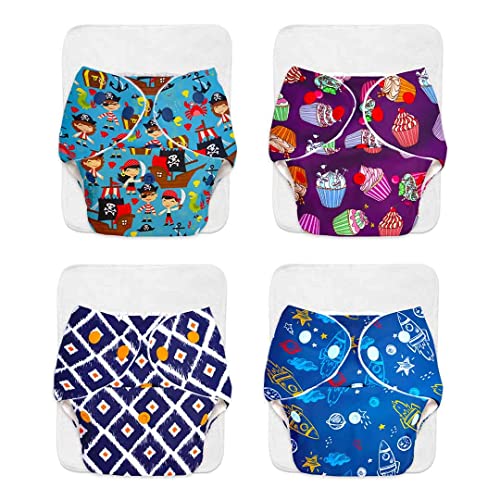 CONTENTS : Pack of 4 cloth diapers for babies with 4 dry feel inserts / Soakers.