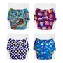 BASIC Assorted Pack of 4 Diapers with 4 Dry feel Inserts - Freesize cloth diapers | Reusable cloth diapers for babies - Fits babies from 0-3 years - 5-17kgs | Option 4