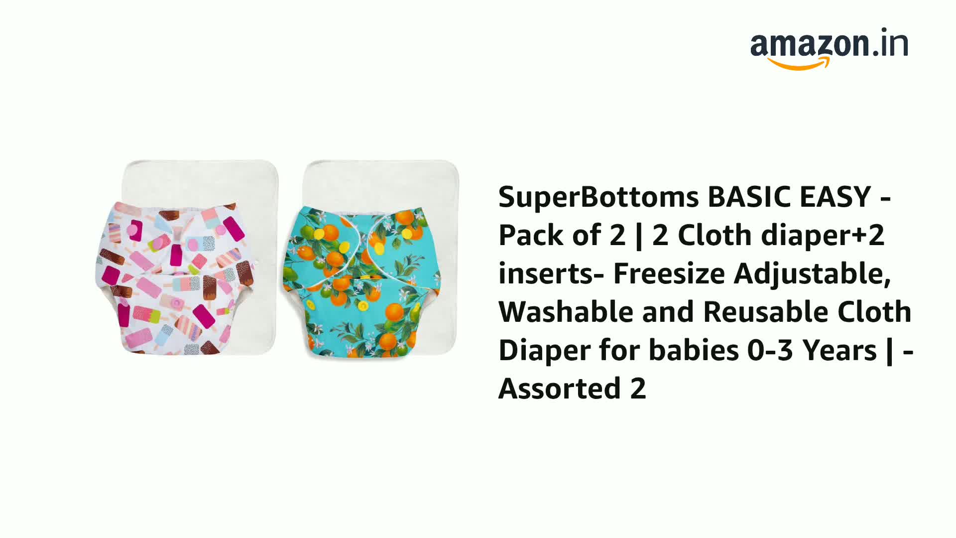 SuperBottoms BASIC EASY - Pack of 2 | 2 Cloth diaper+2 inserts- Freesize Adjustable, Washable and Reusable Cloth Diaper for babies 0-3 Years | - Assorted 2