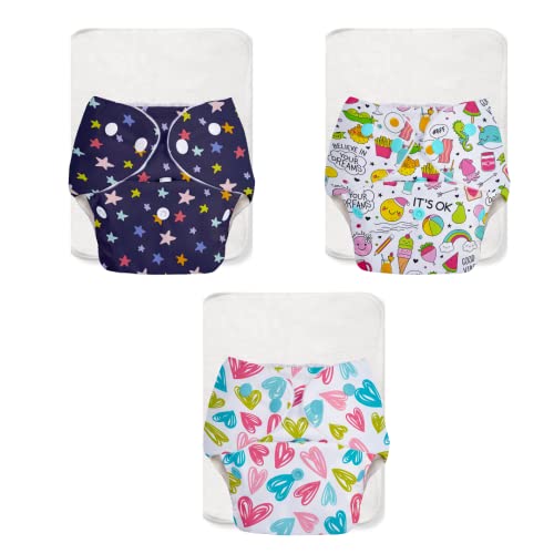 Superbottoms BASIC EASY - Pack of 6 |3 Cloth Diapers+ 3 Inserts - Freesize Adjustable and Reusable Cloth Diaper for babies 0-3 Years | With quick drying prefold style soaker-Assorted