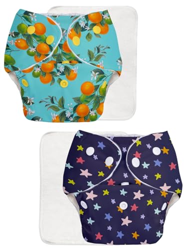 SuperBottoms BASIC - Pack of 2 Assorted Cloth Diaper For Baby | Washable & Reusable Cotton Cloth Diaper | 0-3 Years | Freesize | Adjustable | Reduces Rash | With Quick Dry Pad/Insert