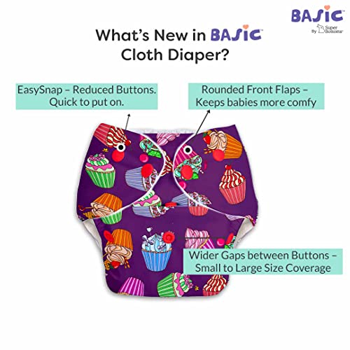 SuperBottoms BASIC Pack of 4 (2 Shell + 2 Insert) Freesize Adjustable and Reusable Cloth Diaper for babies 0-3 Years | Cloth Diaper with Wet-Free Insert with Snaps | Assorted (Print May Vary)