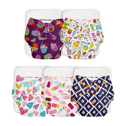 SuperBottoms BASIC Pack of 5 Freesize Adjustable, Washable and Reusable Cloth Diaper for babies 0-3 Years | One Size Adjustable Diapers (Pack of 5 diapers+ 5 inserts) Assorted prints