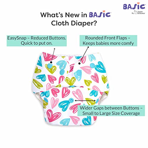 SuperBottoms BASIC Reusable Cloth Diaper with NEW Quick Dry UltraThin pads | 100% cloth Freesize Diapers for baby 0-3 Yrs |Stay Dry & Lasts up to 3Hrs | Trim Fitting Dries 2times faster | Hearts