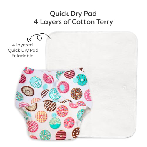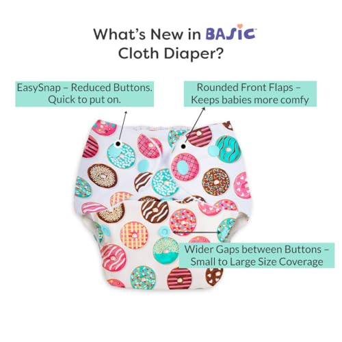 SuperBottoms BASIC Reusable Cloth Diaper with NEW Quick Dry UltraThin pads | 100% cloth Freesize washable Diapers for baby 0-3 Yrs |Stay Dry & Lasts up to 3Hrs | Trim Fitting Dries 2times faster | Donut