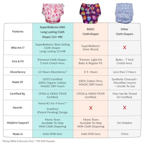 HomeBabyDiaperingCloth DiapersSuperBottoms Cloth Diapers for babies - Cloth Diaper Combo Pack of 2 Freesize UNO- New Version| Reusable Cloth Diapers for babies 0 to 3 years | With 2 organic cotton inserts/pads