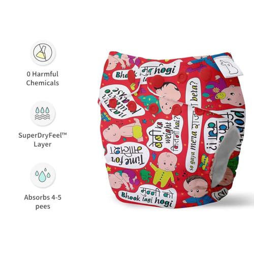 SuperBottoms Cloth Diapers for babies - Cloth Diaper Combo Pack of 5 Freesize UNO| Reusable Cloth Diapers for babies 3M to 3Y | With 5 organic cotton inserts/pads
