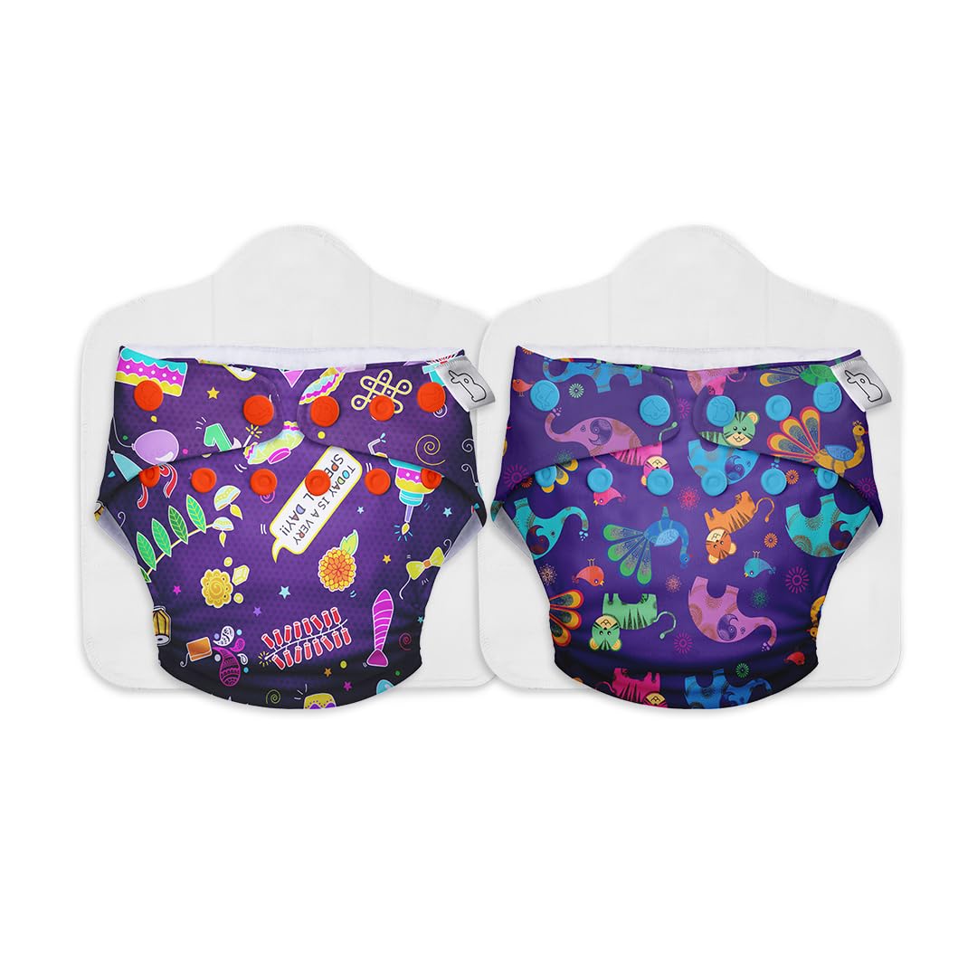 SuperBottoms Combo Pack of 2 Freesize UNO - Reusable waterproof Adjustable cloth diaper for babies from 5-17kgs with Dry feel Organic cotton Pad - Option 8