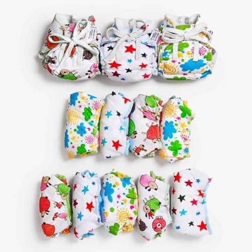 SuperBottoms First Love DryFeel Langot¢ for Newborn Baby | No Mess Langot | Premium Cotton Padding (No Sponge) | Ultra-Soft | Mess-Free Diaper-Free Time | 0-9M | (Printed Pack of 12 Large)