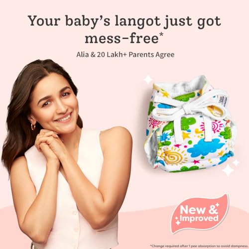 SuperBottoms First Love DryFeel Langot¢ for Newborn Baby | No Mess Langot | Premium Cotton Padding (No Sponge) | Ultra-Soft | Mess-Free Diaper-Free Time | 0-9M | (Printed Pack of 12 Small)
