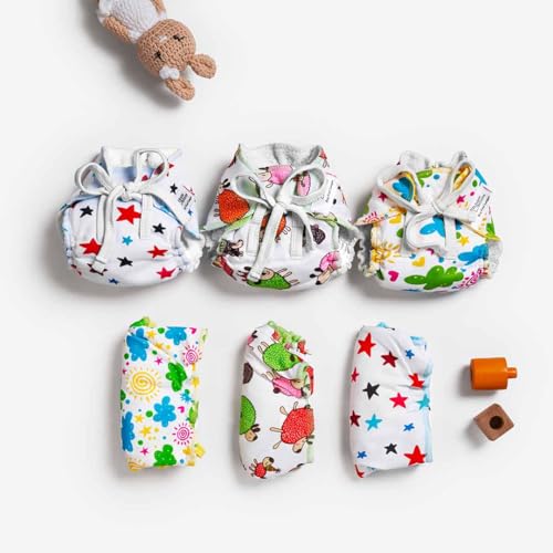 SuperBottoms First Love DryFeel Langot¢ for Newborn Baby | No Mess Langot | Premium Cotton Padding (No Sponge) | Ultra-Soft | Mess-Free Diaper-Free Time | 0-9M | (Printed Pack of 6 Small)