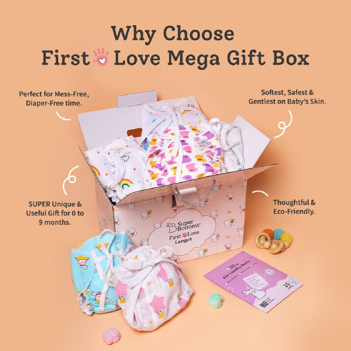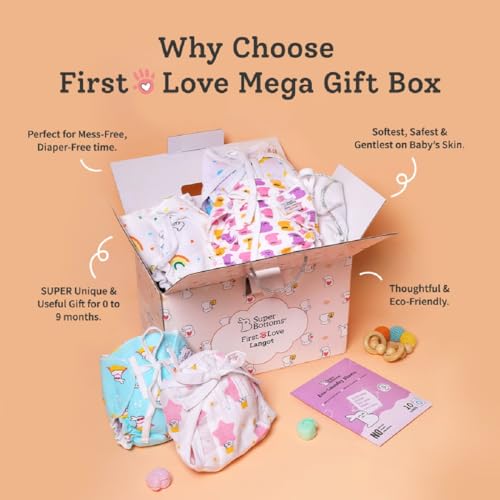 HomeBabyDiaperingCloth DiapersSuperBottoms First Love Mega Gift Box | Softest, Breathable & Gentlest langots for your baby | Baby shower gift pack | No Mess Langots for Newborns between 0 to 9 months | Pack of 31 (Size: Large)
