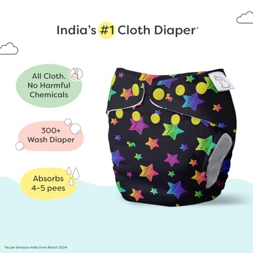 SuperBottoms NEW UNO Freesize Cloth Diaper | Cloth diaper for babies 3M to 3Y | Washable & Reusable cloth diaper | Comes with cloth diaper insert | 1 Diaper and 1 Organic cotton Soaker