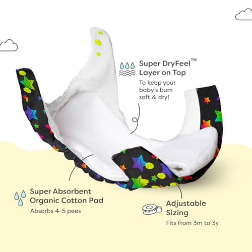 • Skin-Friendly Eco-Friendly & Pocket-Friendly: SuperBottoms Freesize UNO Cloth Diaper is made from 100% Organic Cotton Pads which serve as diaper inserts. With its Super DryFeel Layer it keeps your baby's bums dry and helps prevent rashes. Being washable a