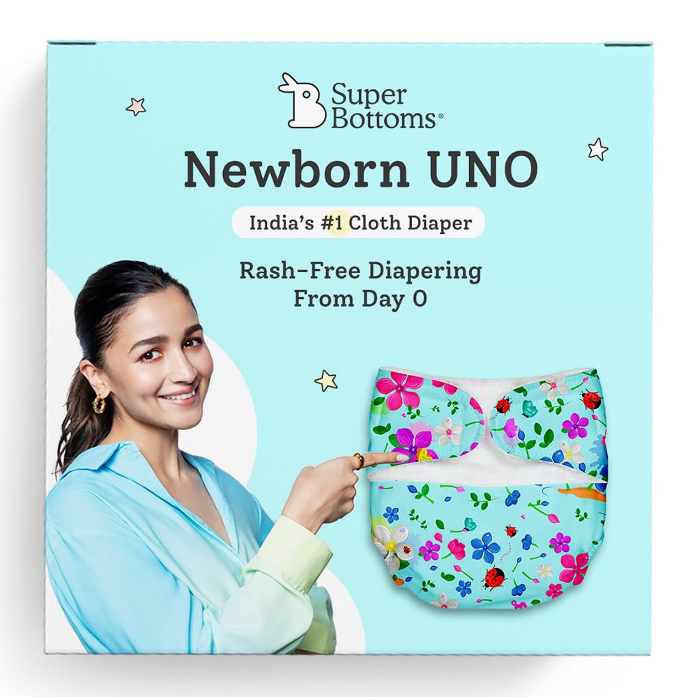 • CONTENTS: This pack contains 2 Items - 1 Multi-size Waterproof Outer with velcro and 1 Dry Feel Pad (Newborn size). SuperBottoms Newborn UNO cloth diaper is a perfect cloth diaper for your little one made with the softest fabrics and zero harmful chemica