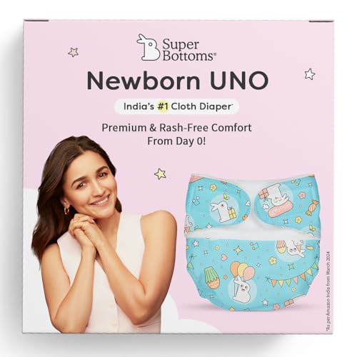 SuperBottoms Newborn UNO: Premium & Rash-Free Comfort From Day 0!Perfect for newborns weighing 2.57 kg (0 to 3 months).Introducing the SuperBottoms Newborn UNO a reusable and washable cloth diaper designed for your newborns comfort.This diaper is made from all-natural materials and contains no harmful chemicals making it the gentlest choice for your babys delicate skin. It gives you the convenience of a disposable diaper while keeping the benefits of cloth perfect for busy parents!The Newborn UNO has a soft waterproof outer layer made from velvety soft fabric and comes with a Dry Feel Magic Pad. Made from GOTS Certified 100% Organic Cotton it can absorb 4-5 pees keeping your newborn dry and comfy. Plus the Velcro closure makes it easy to put on and adjust!The special SuperDryFeel layer on top keeps your babys bum nice and dry even after they pee on it. Its designed for newborns up to 3 months old fitting babies weighing between 2.5 kg and 7 kg.Certified by CPSIA and OEKO-TEX the diaper is gentle on your babys sensitive skin.Loved by over 20 Lakh+ parents and recommended by paediatricians SuperBottoms is committed to giving your baby the best care without compromise.Note: Give them a wash before using for the best results!The Dry Feel Magic Pad may come with either a blue or white SuperDryFeel layer depending on whats in stock. But dont worryits performance will be just as great keeping your baby dry and comfy!