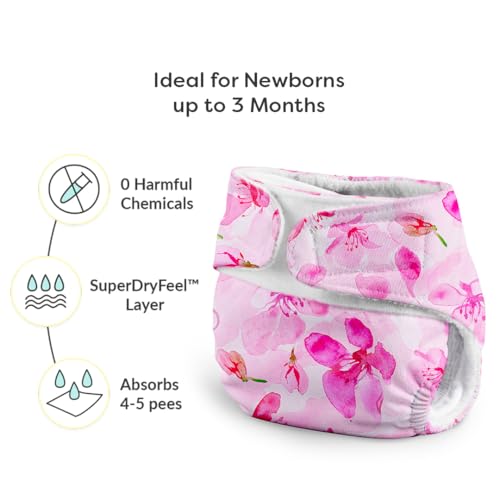 SuperBottoms Newborn UNO Premium Cloth Diaper with Insert (0 to 3m) | Washable & Reusable Diaper with Organic Cotton Pad | Superior Absorption | Waterproof | SuperDryFeel™ Layer | Super Soft & Gentle