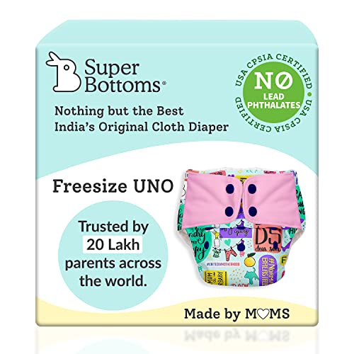 SuperBottoms Pack of 2 (1 Waterproof Outer + 1 Organic Cotton Dry Feel Magic) UNO Freesize Cloth Diaper with Extra Booster | Cloth diaper for babies 3M to 3Y |(Mommy Talk <3)
