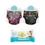 SuperBottoms Pack of 2 Cloth Diapers for babies and XtraHydrating¢ Wipes-72 Pack-Freesize Washable & Reusable Adjustable cloth diaper for babies from 5-17kgs|Diaper with 2 Dry Feel Pad