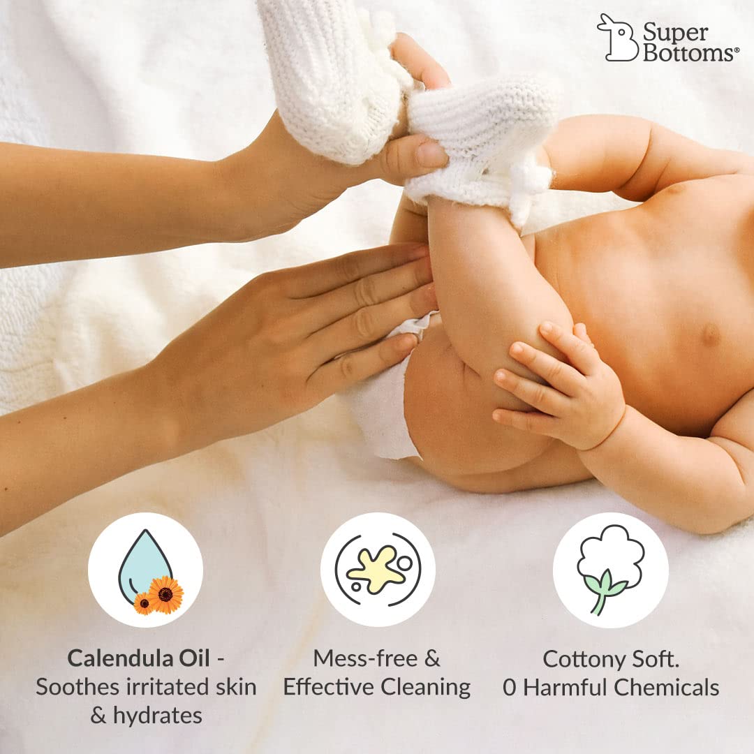 • The Calendula oil has anti-inflammatory properties that help soothe irritated skin & leave the skin supple after wiping.