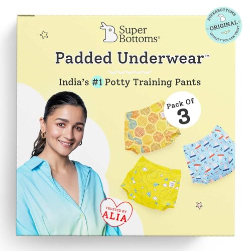 SuperBottoms Padded Underwear¢ | For Potty Training & Mess-Free Diaper-Free time | Prevents Pee Puddles | 3 layers of Premium Cotton Padding (No sponge) | (Explorer Size: 2 Pack of 3)