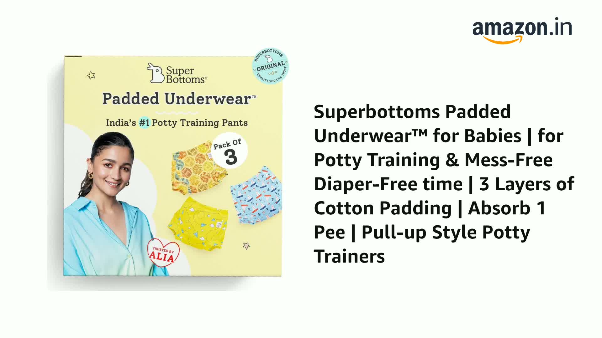 superbottoms Padded Underwear™ for Babies | for Potty Training & Mess-Free Diaper-Free time | 3 Layers of Cotton Padding | Absorb 1 Pee | Pull-up Style Potty Trainers