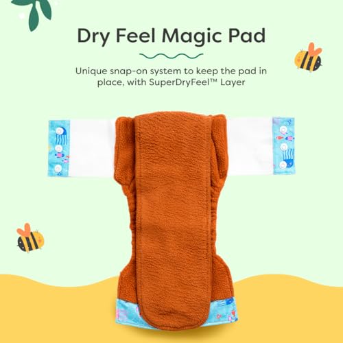 • High Absorbency: UNO Dry Feel Magic Pads made of 100% organic cotton with SuperDryFeel microfleece absorb 4-5 pees and keep the babys bum feeling dry.