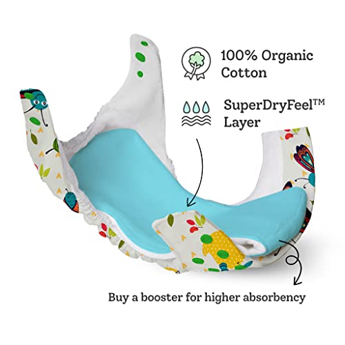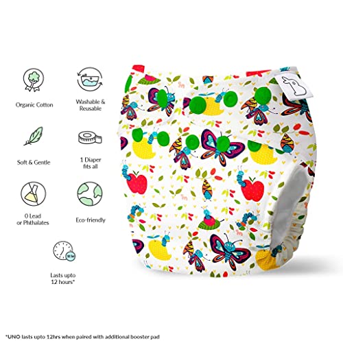 SuperBottoms UNO Freesize Cloth Diaper | Cloth diaper for babies 3M to 3Y | Washable & Reusable cloth diaper | Comes with cloth diaper inserts | 1 Organic cotton Soaker + 1 Booster | Catepillar