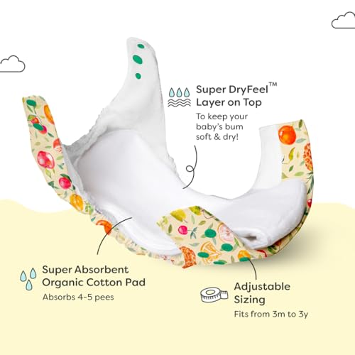 SuperBottoms UNO Freesize Premium Cloth Diaper for babies (3m-3y) + Organic Cotton Pad | Washable & Reusable 300+ Times | Superior Absorption | Waterproof | Super Soft & Gentle - Fruit-burst