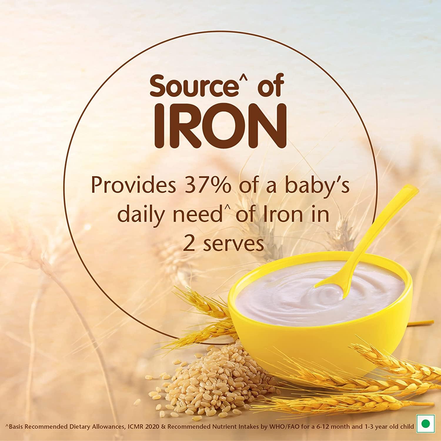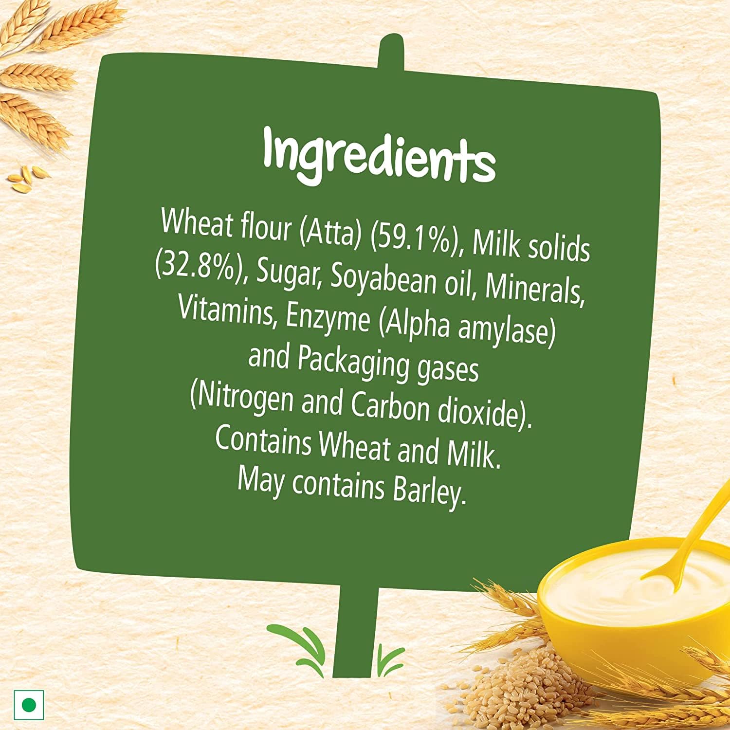 Nestle Cerelac Baby Cereal with Milk is a complementary baby food for infants from 6 to 24 months. While infants and children have higher requirements of nutrients than adults 2 serves of Cerelac Wheat Cereal provide 37% of a babydaily needof iron. It is also a source of 14 important nutrients including vitamins and minerals. Vitamin A C and Zinc help support normal immune system function. This baby cereal is rich in protein and packed with the goodness of cereal and milk. With 155 years of scientific expertise in infant nutrition Nestle develops infant nutrition products backed by evolving science and research. Innovation has been at the heart of Nestle since its beginning.Usage: Step 1: Wash and dry your hands before preparing baby's food. Make sure all utensils are throughly clean. Step 2: Boil clean drinking water for 5 minutes. Allow to cool until lukewarm. Measure the quantity of water as mentioned on the table-1 above and pour it into the babybowl. Step 3: Add the number of scoops of CERELAC as mentioned in the table 1. Step 4: Stir until the cereal is smooth and feed immediately using a clean spoon. Warning: Infant food should be used only on advice of a health worker as to the need for its use. Discard unused feed. Infant food is not the sole source of nourishment. Storage Instructions - After opening the pack the contents should immediately be transferred to an empty clean dry and airtight container. After each use replace lid tightly & store in a cool dry and hygenic place.