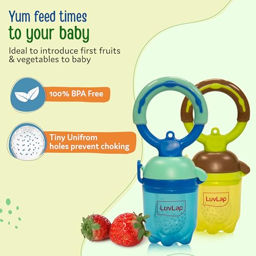 LuvLap Baby food and fruit feeder twin packs are availble in attractive colors ergonomic designs and makes baby's introduction to solid food and feeding to weaning babies an easiser job. The pack contains 3 different sizes of feeder sack to meet the growing consumption need of the babies