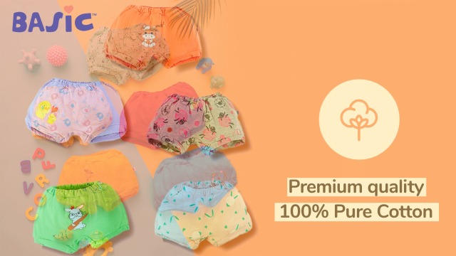 superbottoms Basic™ Bloomer for Kids| Unisex, 100% Pure Cotton Innerwear | Breathable & Soft Kids Underwear | Baby Bloomers I Pack of 5
