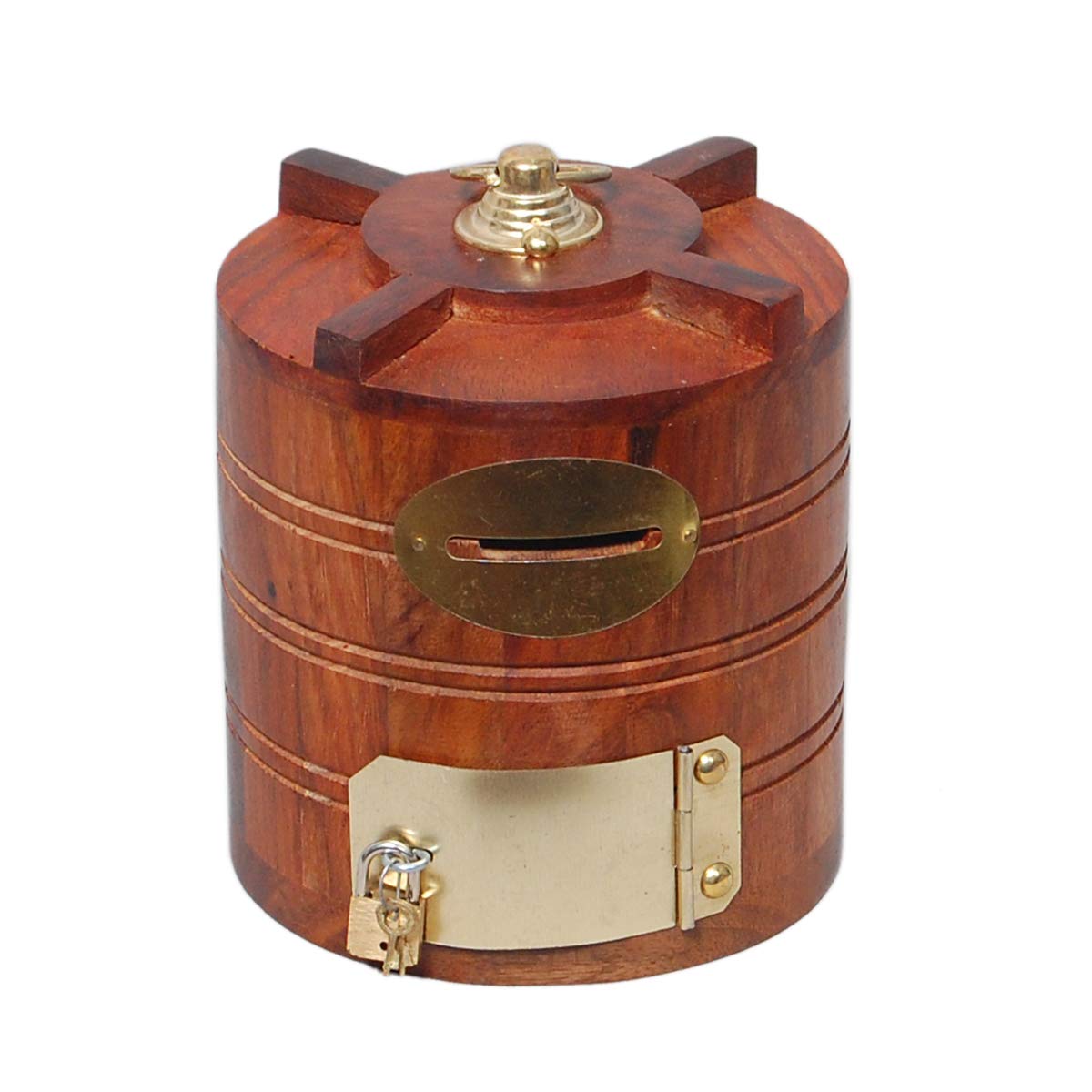 SAHARANPUR HANDICRAFTS Wooden Money/Piggy Bank Money Box Coin Box with Carved Design for Kids/Children. with Lock Sisam Wood
