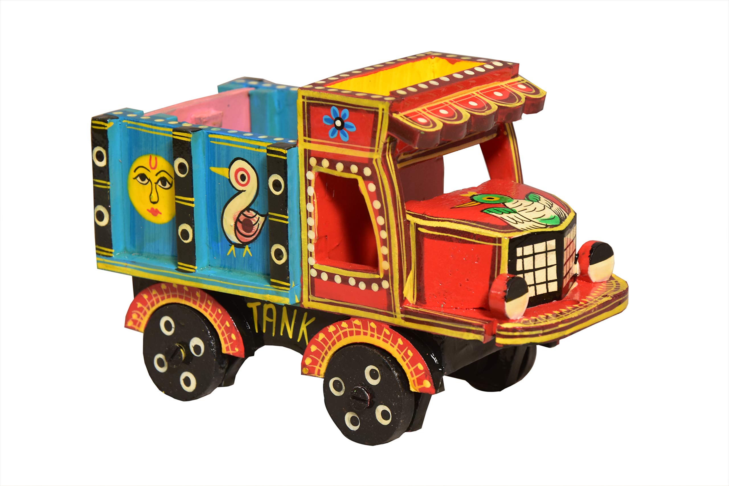Ideal for gifting Purpose or Golu Navratri return giftsSuitability : It's a unique benchmark creation by our Indian rural craftsman that can surely give your room an ethnic look. VARANASI WOODEN TOYS colorful wooden miniature truck vehicle will make your drawing room different from other. When this awesome truck will be placed in the empty display corner your guests would not but praise it.They must be a little bit envious of your taste of selection. Truck whether it be the original or toy vehicle is endeared to Punjabi munda.Yes this truck must be a cuddling toy when you get for your kids or gift it to any other child on birthday. The truck toy is made of wood by rural artisans. There is no such edge in it that can hurt your kids when they would play with it. The truck can embellish your restaurant lounge hotel reception hall and the trucks will ornament your wedding decor.It is no doubt an exotisc showpiece for your home.Navratri Podi decor would be incomplete without this truck. The dimensions of the truck are (L x W x H): 14.732 cm x 7.112 cm x 10.16 cm.The truck is light weight easy to carry and durable.Care Instructions: Handle with Care Keep away from Fire.WOODEN TRUCKS PULL AWAY TOYS SUITABLE FOR KIDS IDEAL FOR HOME DECORS RETURN GIFTS DECORATION PURPOSE CAN BE ALSO USED FOR NAVRATRI GOLU DECORATION. GIVES AN ETHNIC LOOK TO UR PLACE.