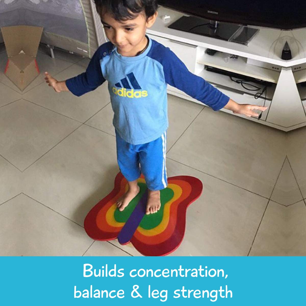 Butterfly kids balance board can be used outdoors or indoors is perfect for any size feet and provides hours of entertainment for all ages.It's sturdy safe and acts as the perfect activity play center for kids of ages 3 years to 8 years.