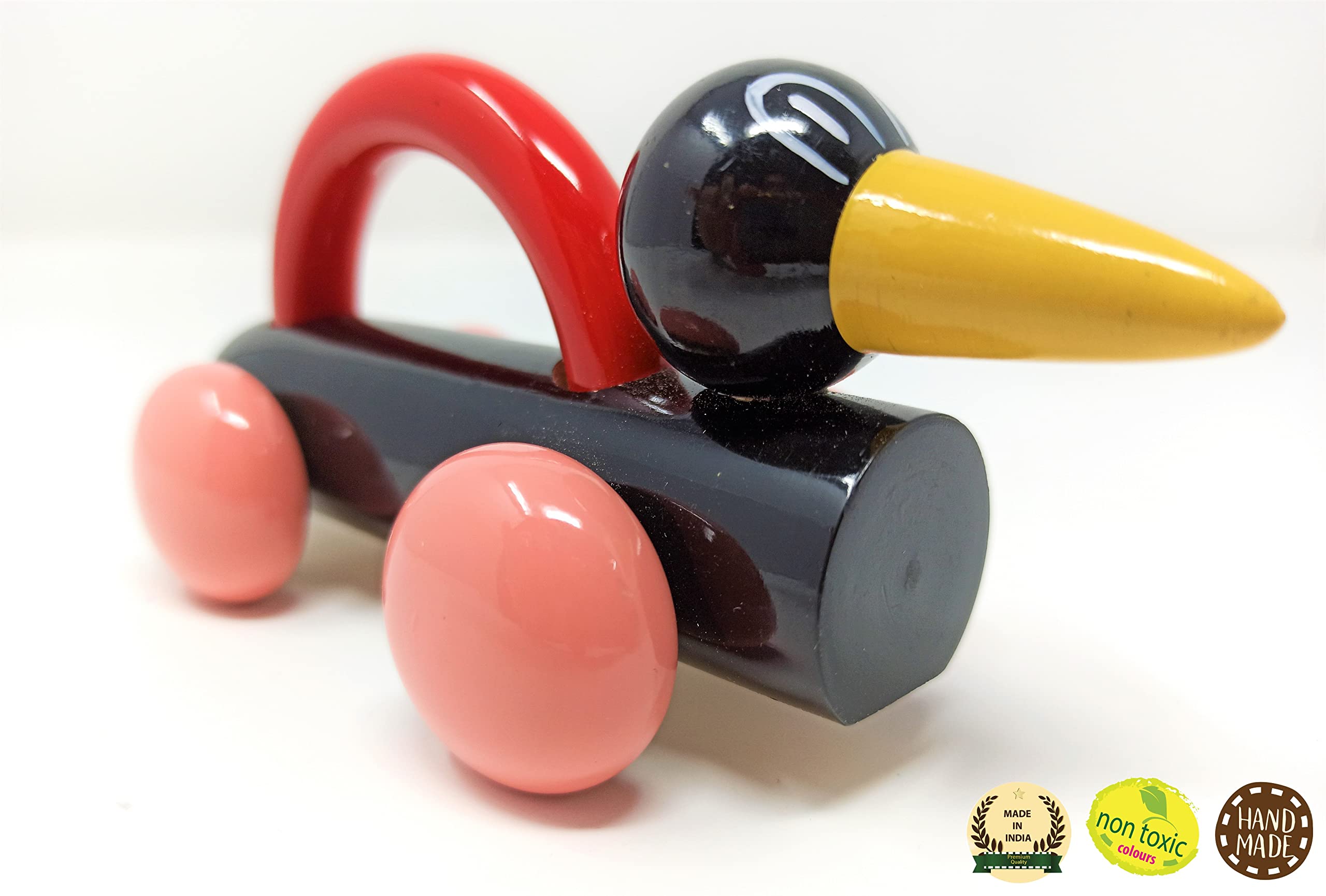 Let The Little Hands hold the rolling wheels to their Happiness.This Push Along Rolling Wheels Pogu Penguin will move with the little legs where ever they goSo let's get the wheels rolling. This toy helps kids in developing Gross Motor Skillsand in increasing their power to Concentrate. These wooden toys have been handcrafted by the Artisans of "Channapatna".This traditional craft is protected as a geographical indication (GI) under the World Trade Organization.It is Made from the Natural Vegetable Coloring Dyes.Non Toxic.Made in India with Love. Toys for Recreational and Therapeutic use for Children Adults and Seniors andcrafted and painted by Indian artisans using soft wood. This product is environment friendly and contains NO plastic